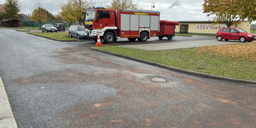Auf dem Parkplatz des Schul- und Sportgeländes wurde durch Passanten eine Straßenverunreinigung durch Kraftstoff festgestellt. Durch den einsetzenden Regen drohte das Gemisch in einen Regeneinlauf zu gelangen. Mittel Ölbindemittel wurde der Bereich durch die Einsatzkräfte abgestumpft und wieder freigegeben.